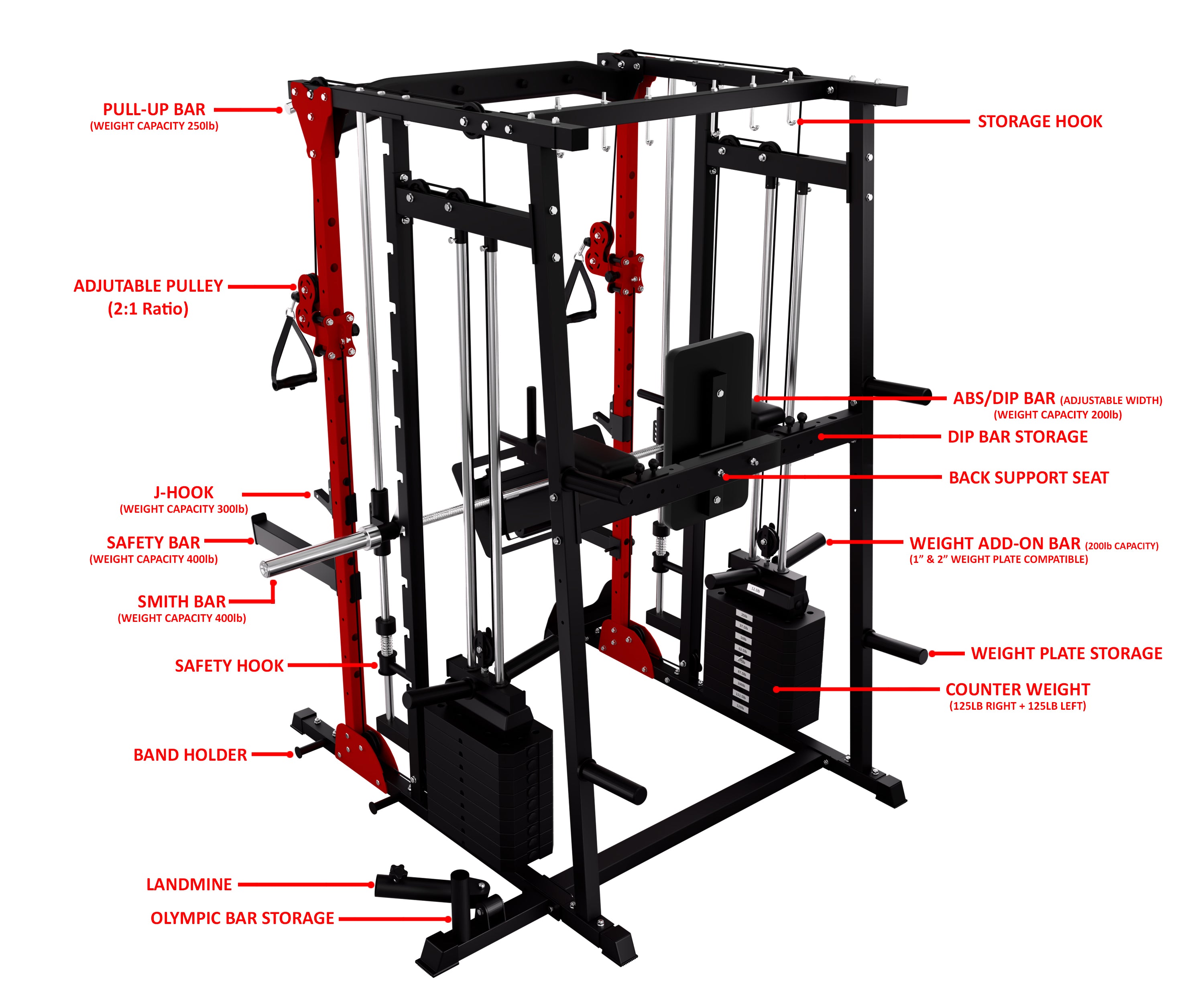 POWER PACK COMMERCIAL SMITH MACHINE - SM04 (Red)