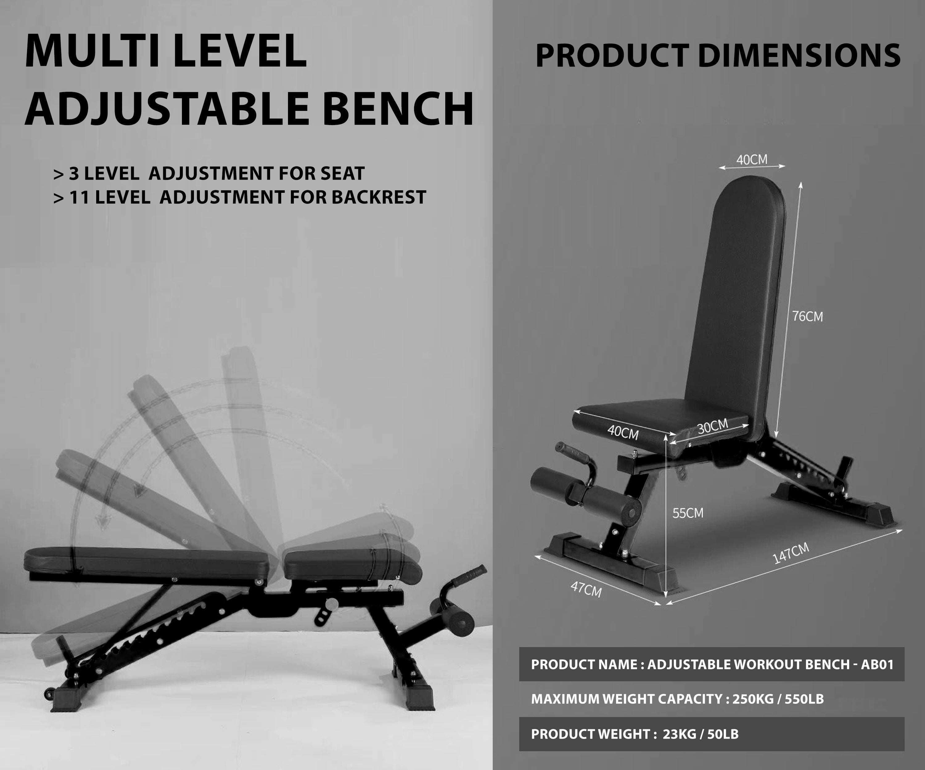 ADJUSTABLE WORKOUT BENCH - AB02