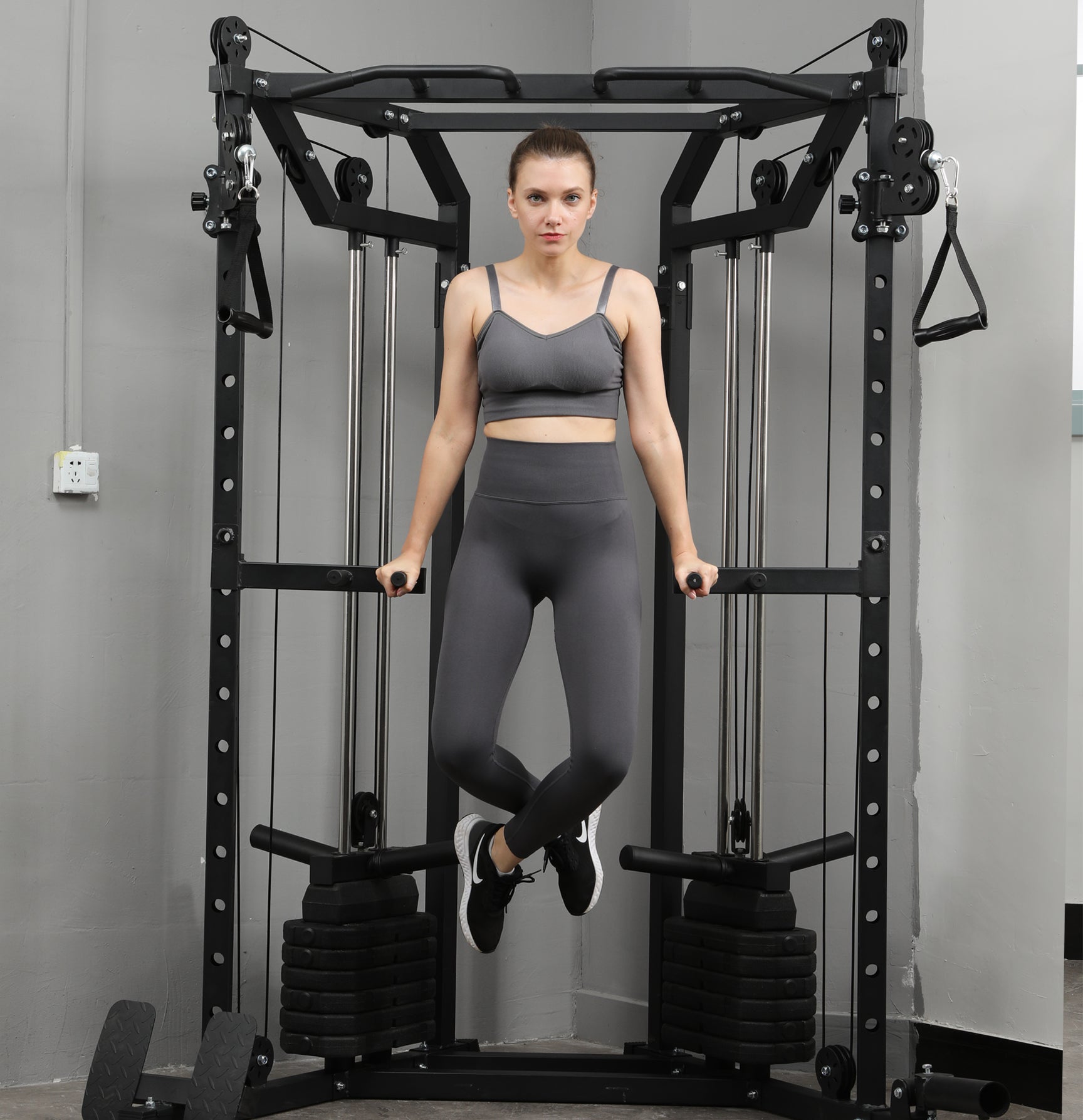 Upgrade your training with our Adjustable Pulley System, featuring a smooth 2:1 cable ratio for full-body workouts. Compact, powerful, and built for precise, fluid movement.