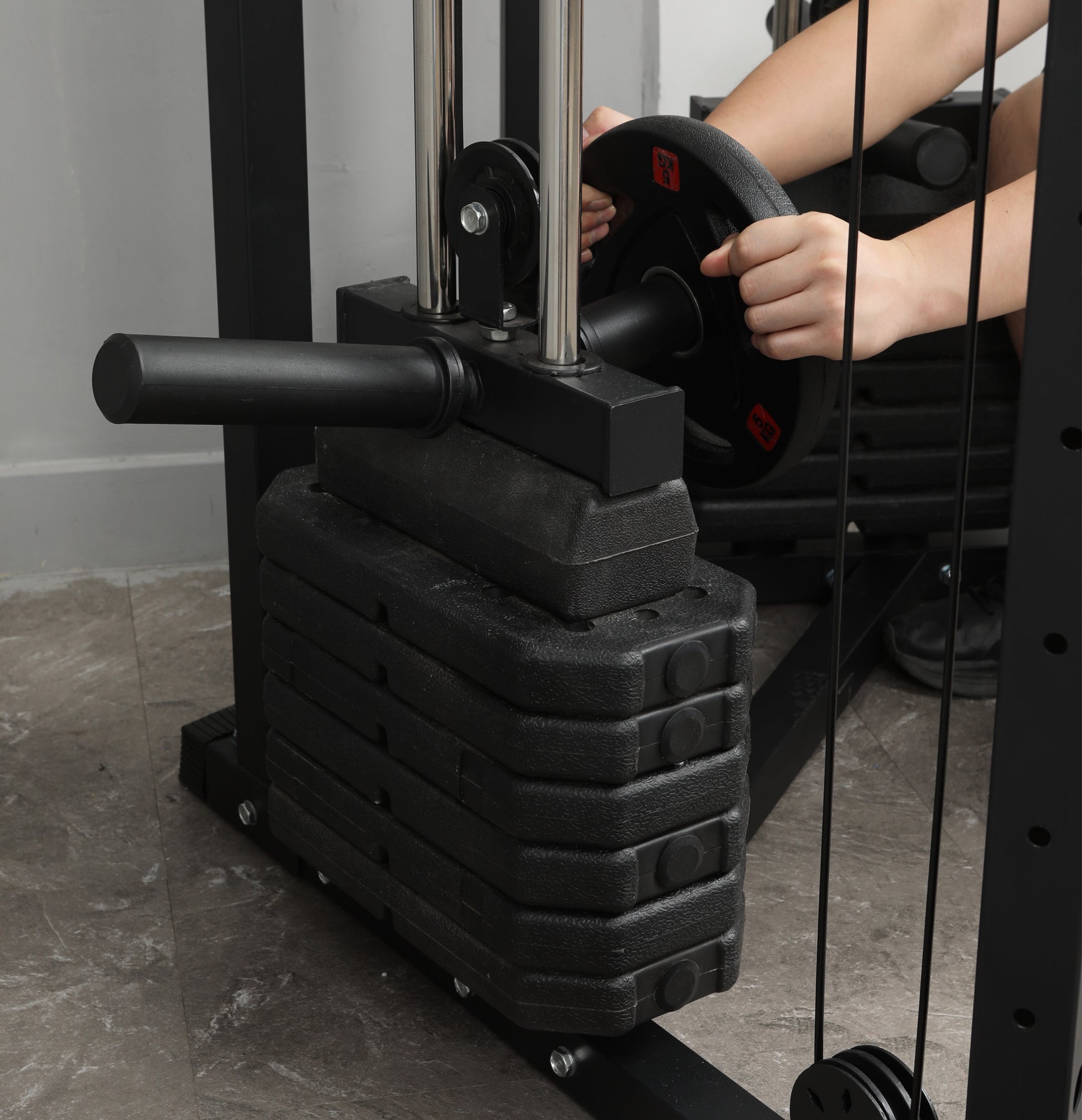 Boost your cable workouts with the 70lb Counterweight each side and Add-On Bar System, designed for smooth motion and added resistance. The add-on bar lets you easily load extra 1" or 2" weight plates for a more intense workout.