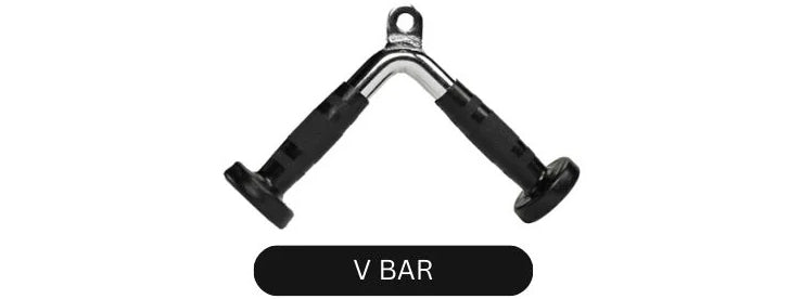 Durable steel V-bar attachment with angled rubber grips for a secure triceps workout.