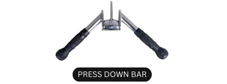 Solid steel press-down bar with angled, non-slip grips for smooth, controlled triceps pushdowns.