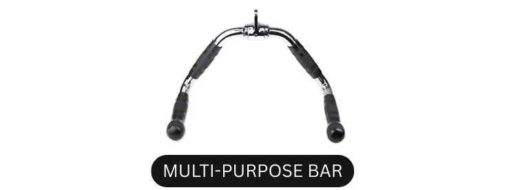 Multi-purpose cable bar with ergonomic rubber grips, ideal for lat pulldowns, rows, curls.