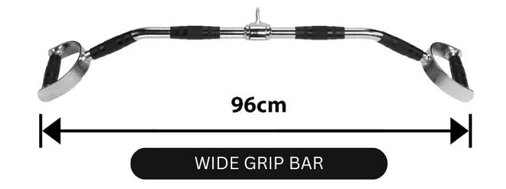 Extra-wide 96 cm bar for deeper lat engagement and stronger upper-body activation.