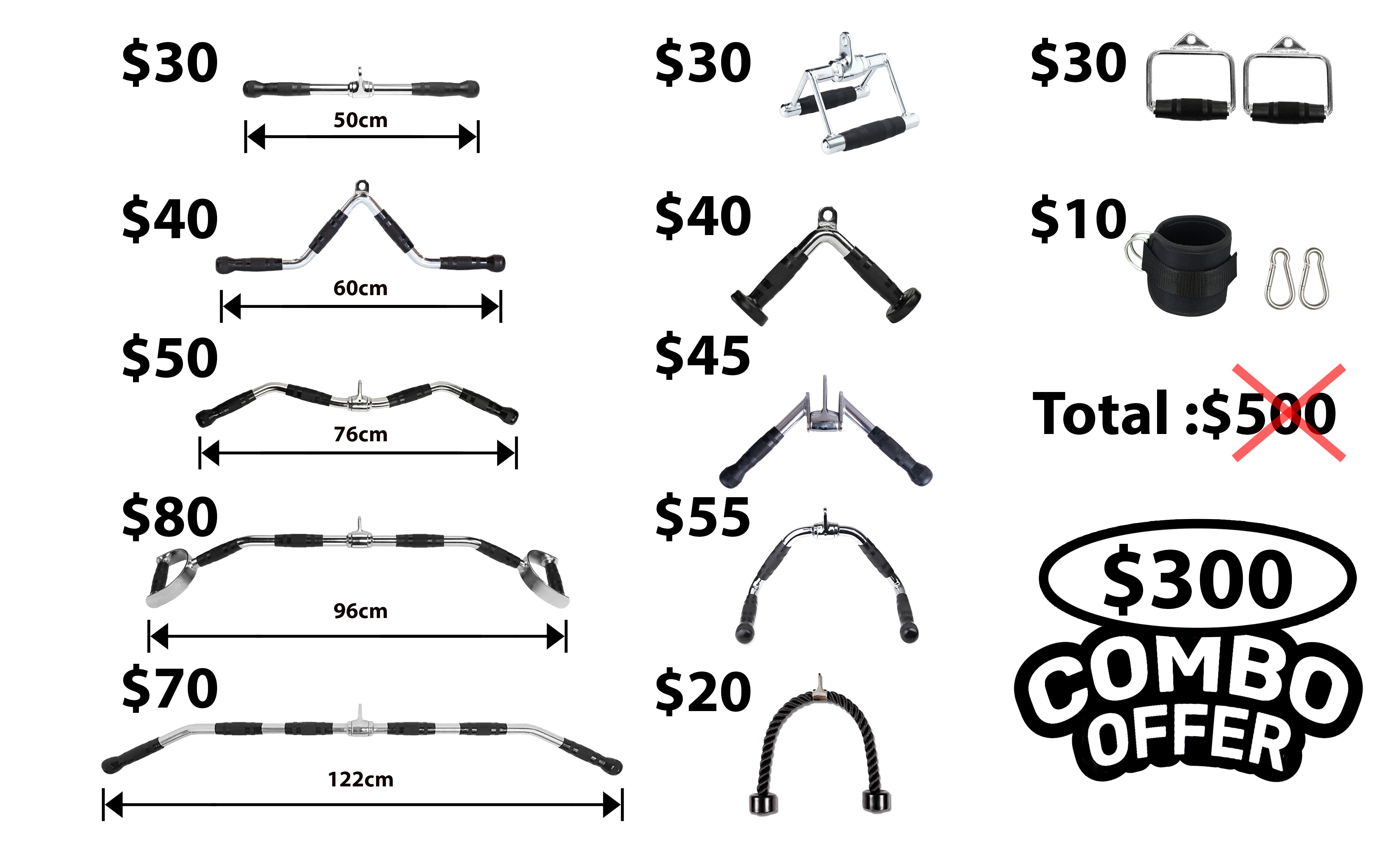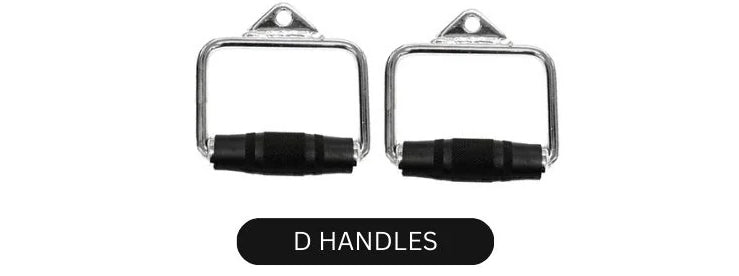 Heavy-duty D handles with ergonomic, non-slip grips for smooth, controlled cable workouts.