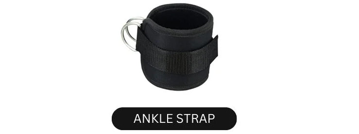 Adjustable ankle strap with secure D-ring for effective lower-body cable exercises and targeted leg training.