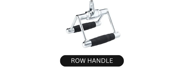 Heavy-duty chrome row handle with dual textured grips, designed for controlled seated rows workout.