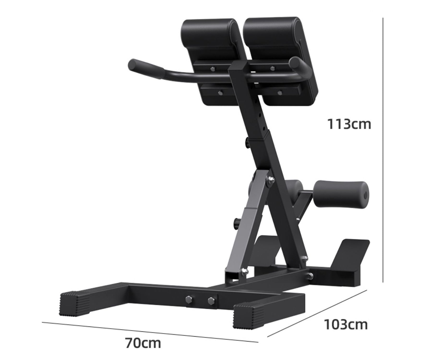 The Hyperextension Machine is designed to effectively strengthen and train your lower back, helping improve core stability and posture. It is suitable for users up to 6 ft tall and supports a maximum weight capacity of 200 lb, making it ideal for safe and comfortable home workouts.