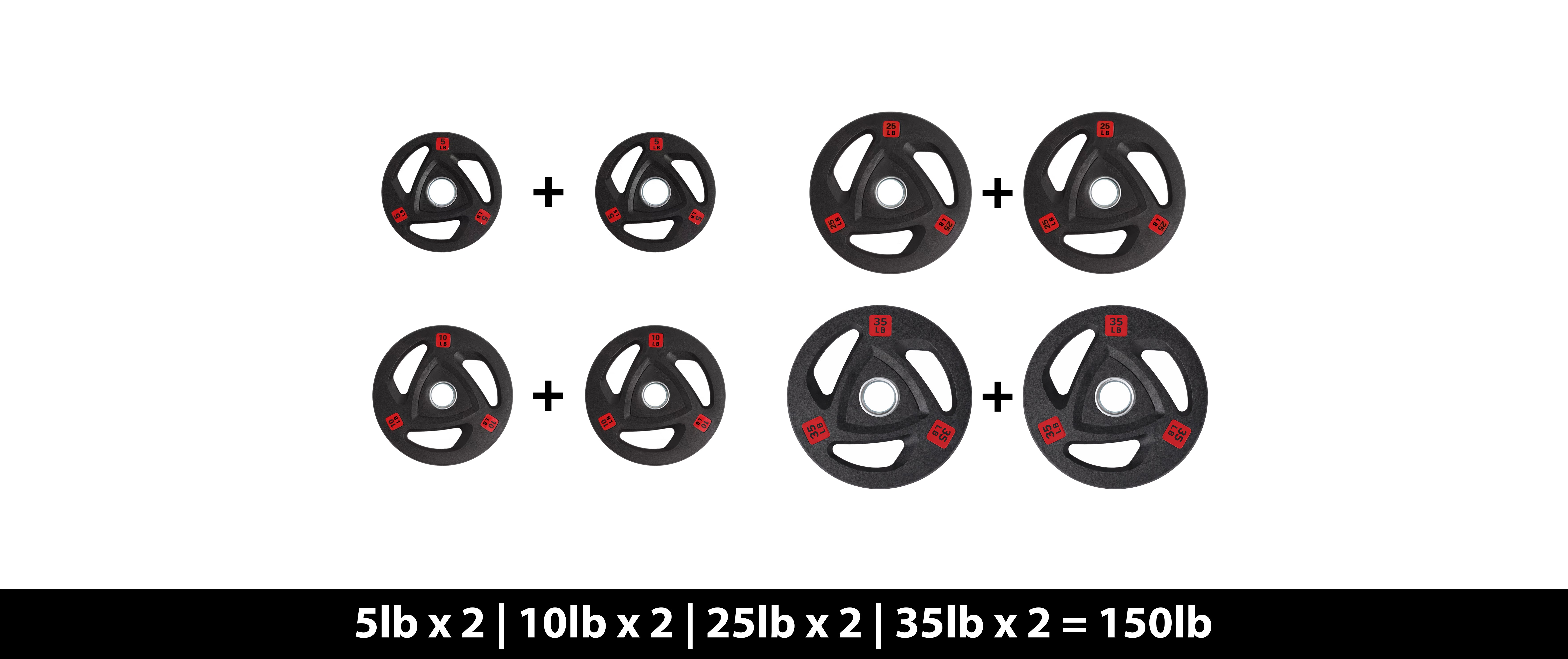 5lb | 10lb | 25lb | 35lb x 2= 150lb