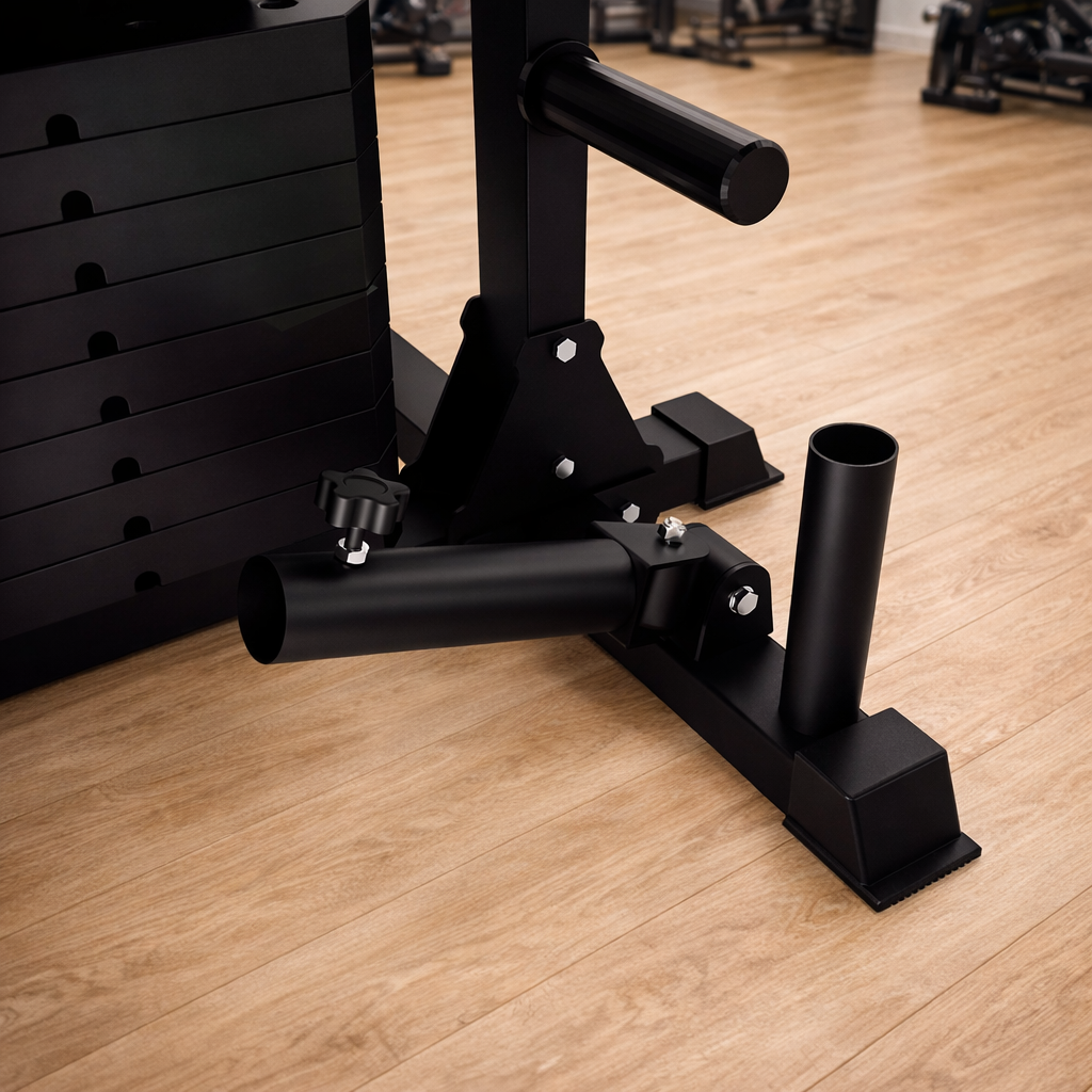 Integrated landmine for 180° functional training and a dedicated holder to keep your barbell securely in place. Saves space, keeps your gym organized, and unlocks versatile pressing, rowing, and rotational movements.