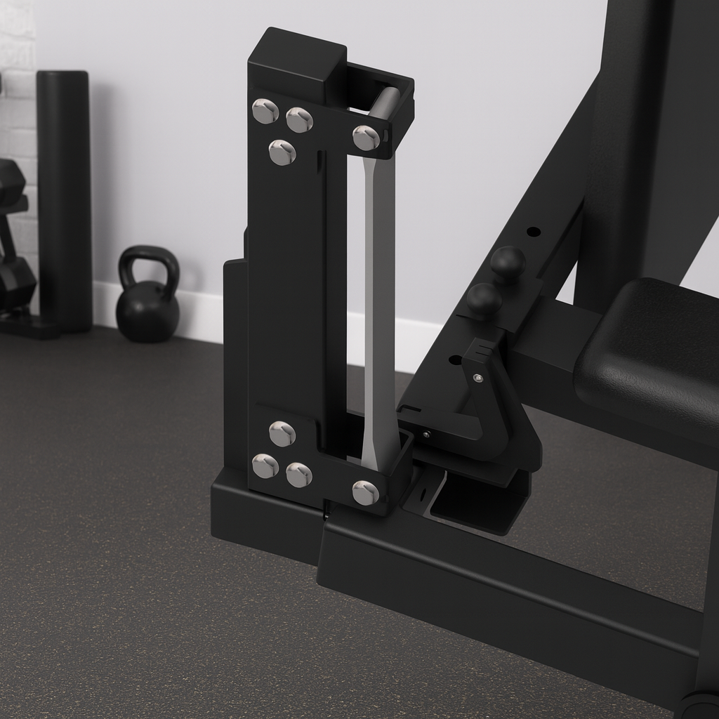 Smooth counterweight system with optional add-on bar for extra plates. Allows precise resistance adjustment, easy starting weight, and progressive overload for all fitness levels.