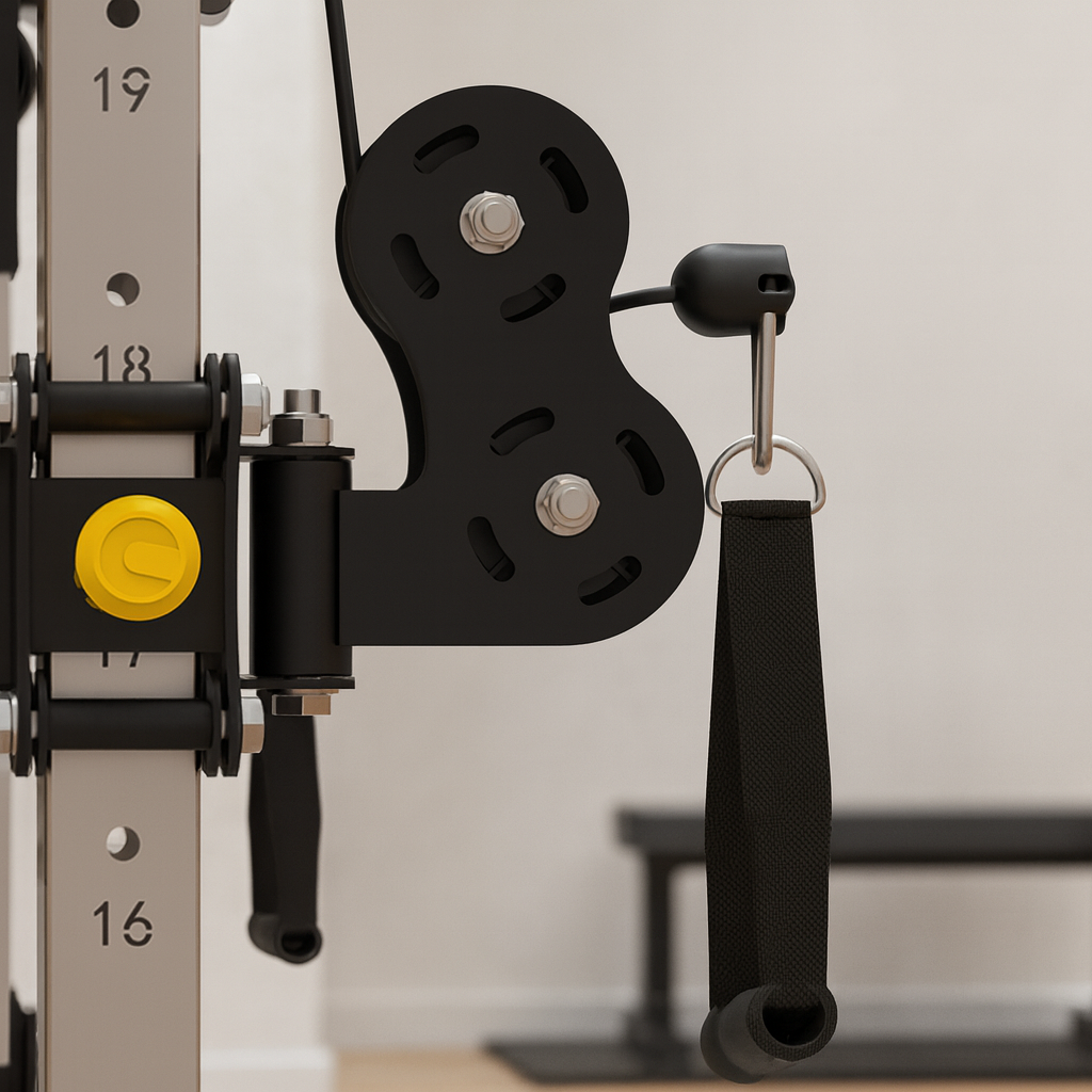 The 2:1 pulley ratio cuts the resistance in half, allowing for smoother motion and more precise weight control. This setup is perfect for beginners needing lighter loads, athletes focusing on higher reps, and anyone who wants controlled, fluid cable exercises.
