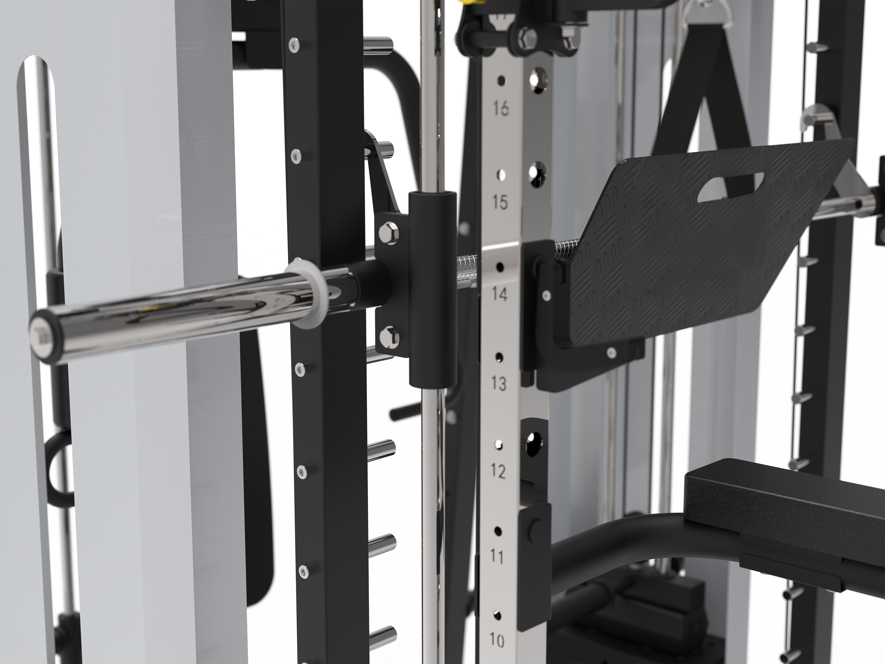 The Smith Bar Locking system is designed to give you full control and maximum safety during your workouts. With secure lock positions, it allows you to stop your bar at multiple heights, making lifting safer and more efficient.